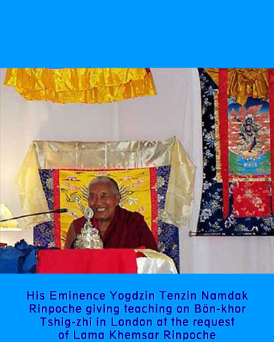His teachings are based on the Tibet's Pre-Buddhist tradition known as Yung Drung Bön Buddhism. Rinpoche is a liberal and ri-med — non-sectarian teacher. He has been teaching in the West as a resident teacher for over 20 years.